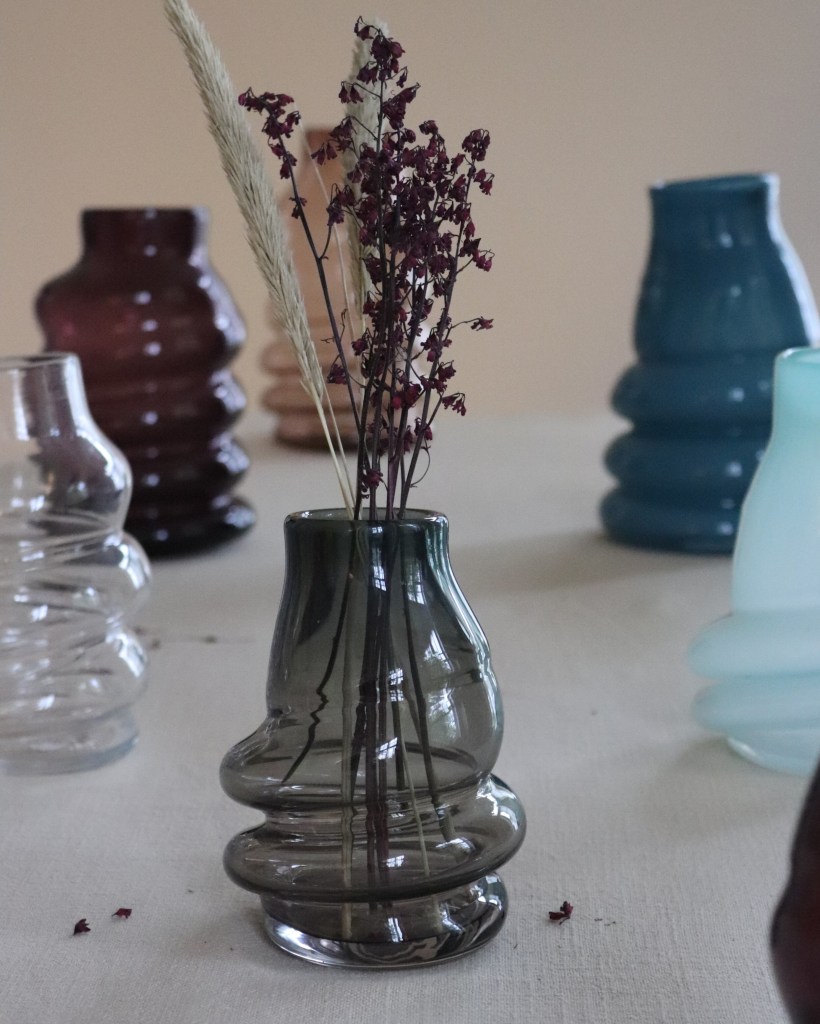 Vaserne er mundblæst i eget værksted og højde og form kan variere en smule. Små magiske bobler kan forekomme.
